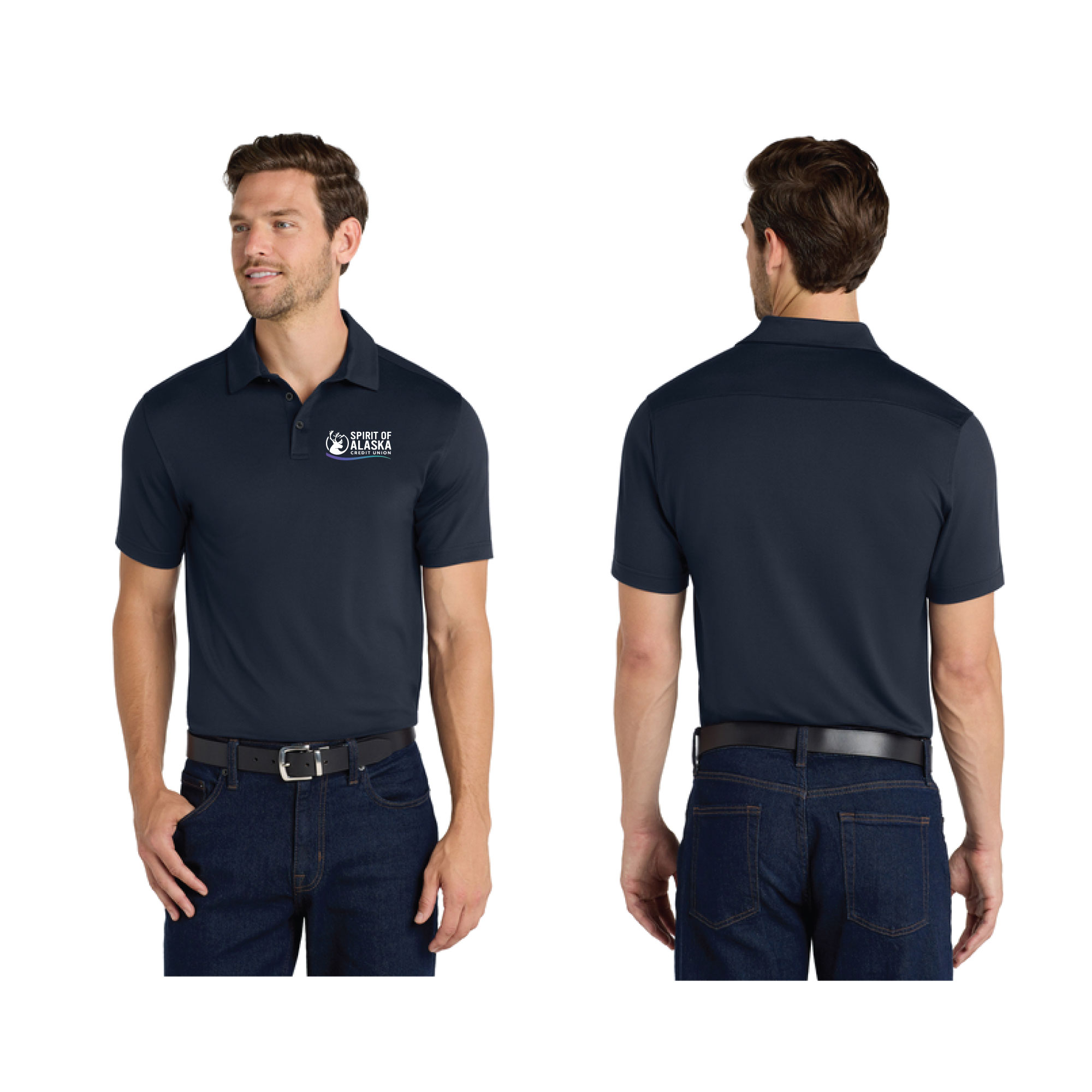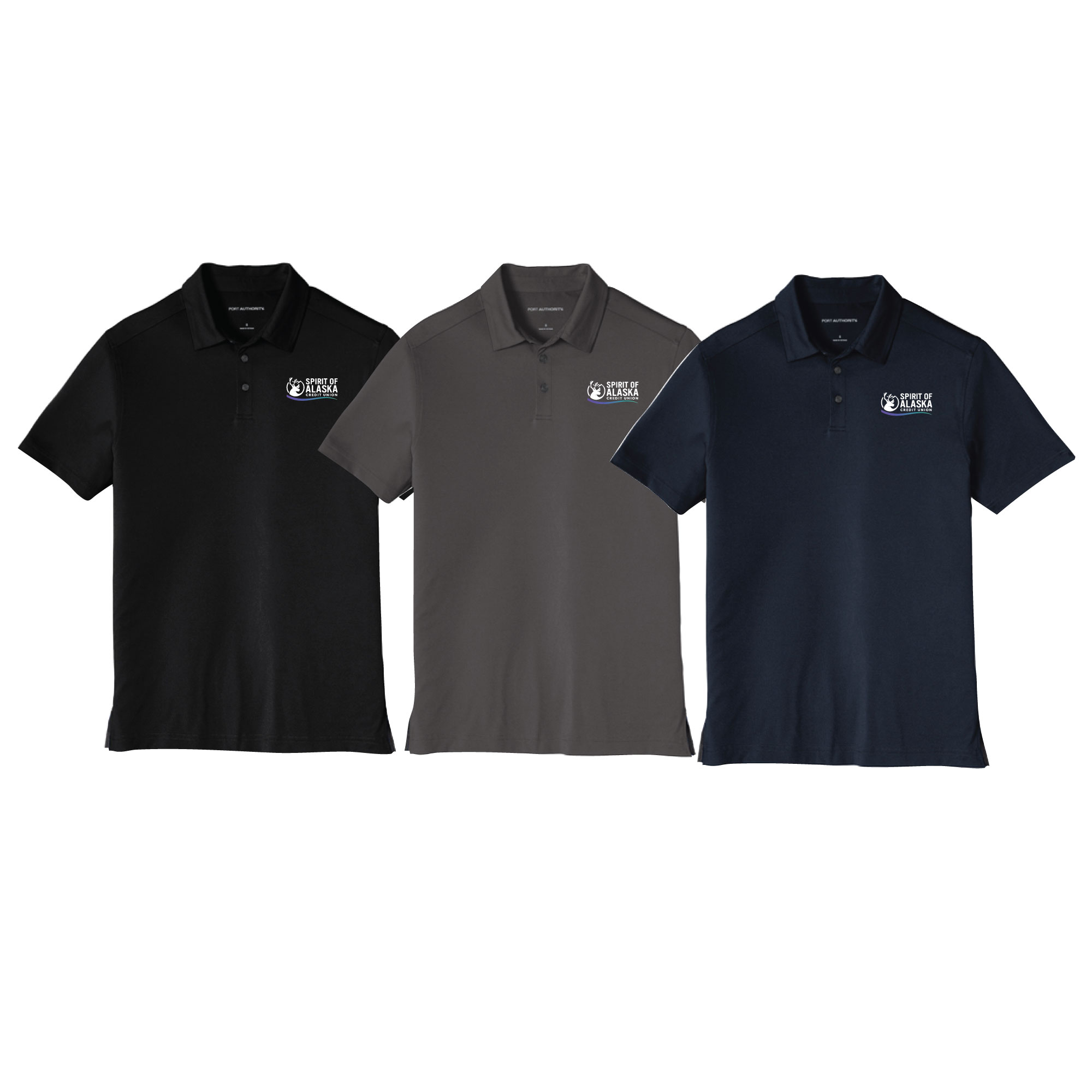 Performance joins professionalism in this Easy Care stretch style that is snag-resistant and wicks moisture while also resisting odors. 5.6-ounce, 94/6 poly/spandex jersey. 3-button placket. Pearlized smoke buttons. Side vents with contrast twill tape.