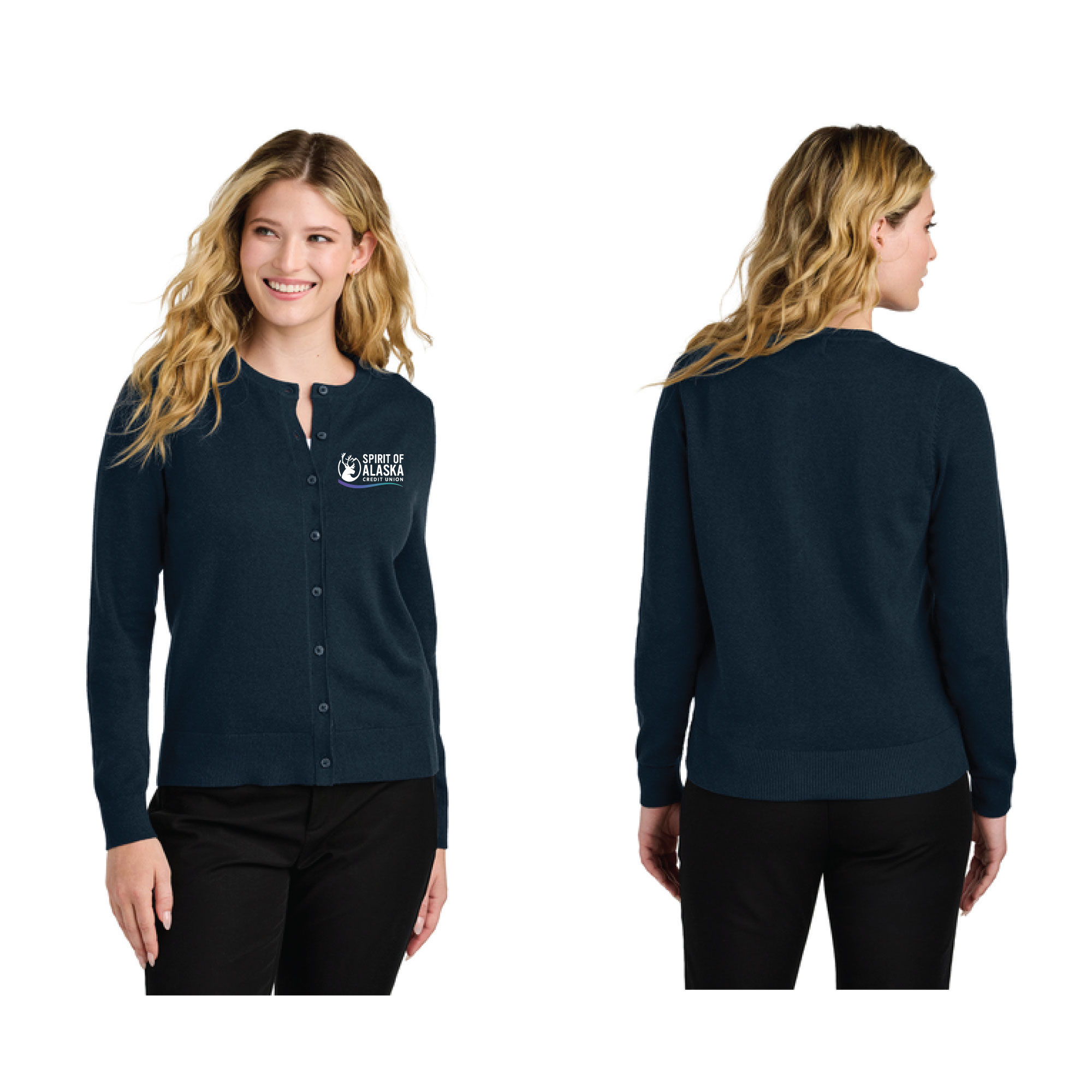 Blending professionalism with supreme comfort, this beautiful tri-blend sweater is an exceptional addition to any work wardrobe. 56/29/15 cotton/nylon/acrylic. Fully-fashioned seams. Machine washable. 1×1 rib knit collar, cuffs and hem. Dyed-to-match faux horn buttons. Hits at the hip.